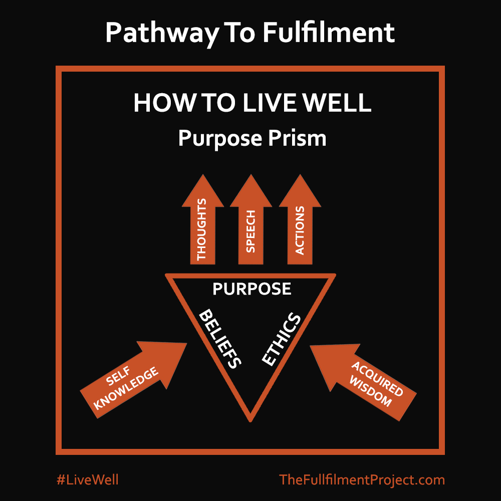 The Pathway To Fulfilment has the steps that it does because the end result are thoughts, speech and actions that are aligned with your purpose that you will define. They come from your Purpose Prism, which includes your beliefs, your ethics and your purpose.